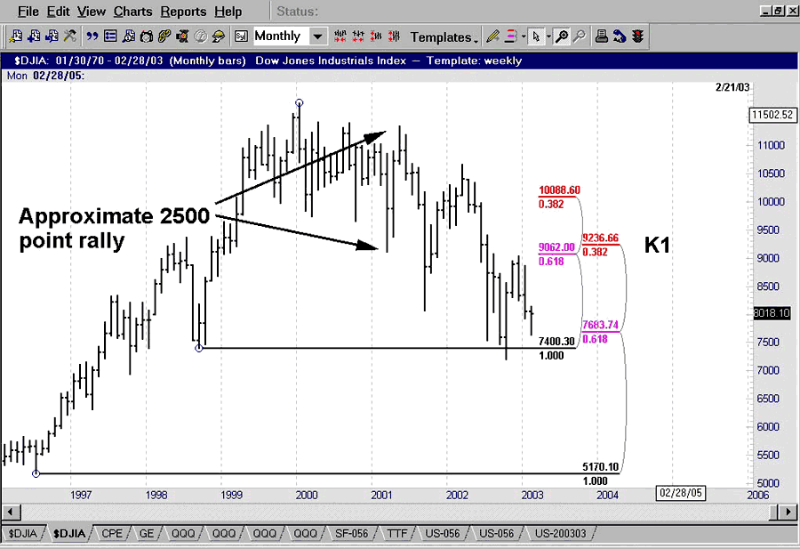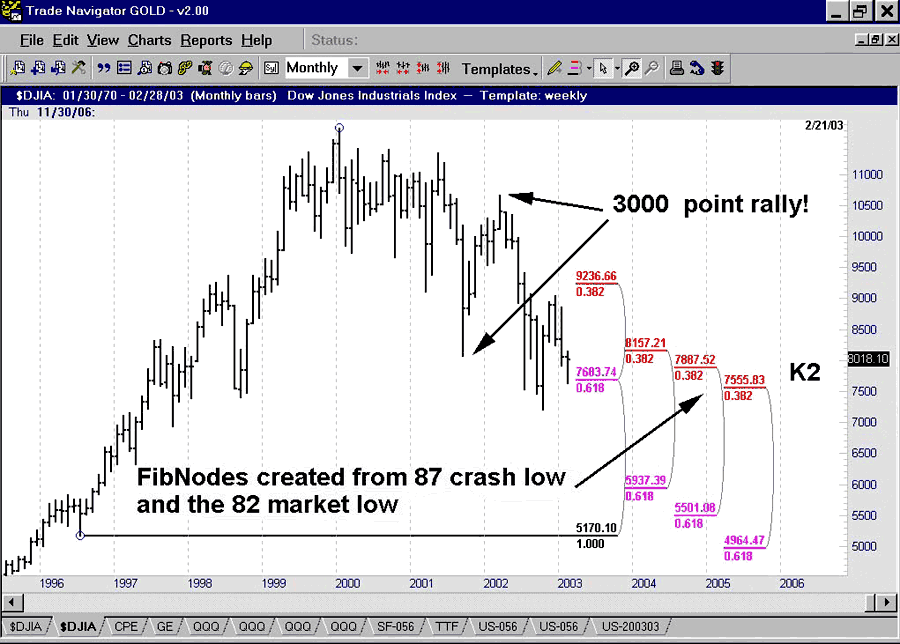 Below is the monthly DOW, showing the major support levels pre-calculated with the DiNapoli Retrace tool. This chart was shown In the